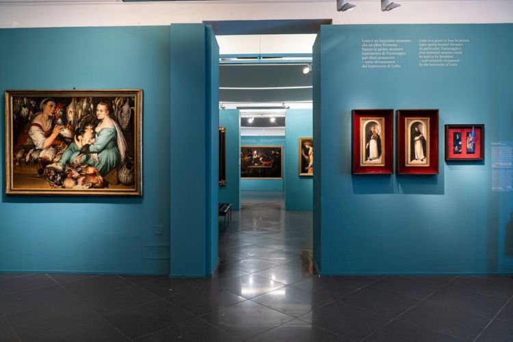 Quattro opere di Lorenzo Lotto danno inizio al filo logico della mostra, riprendendo le parole del critico scritte nella sua tesi di laurea del 1911: «Lotto è un luminista immenso, che va oltre Vermeer […]. Specie la prima maniera luministica di Caravaggio […] può dirsi preparata – certo oltrepassata – dal luminismo di Lotto».