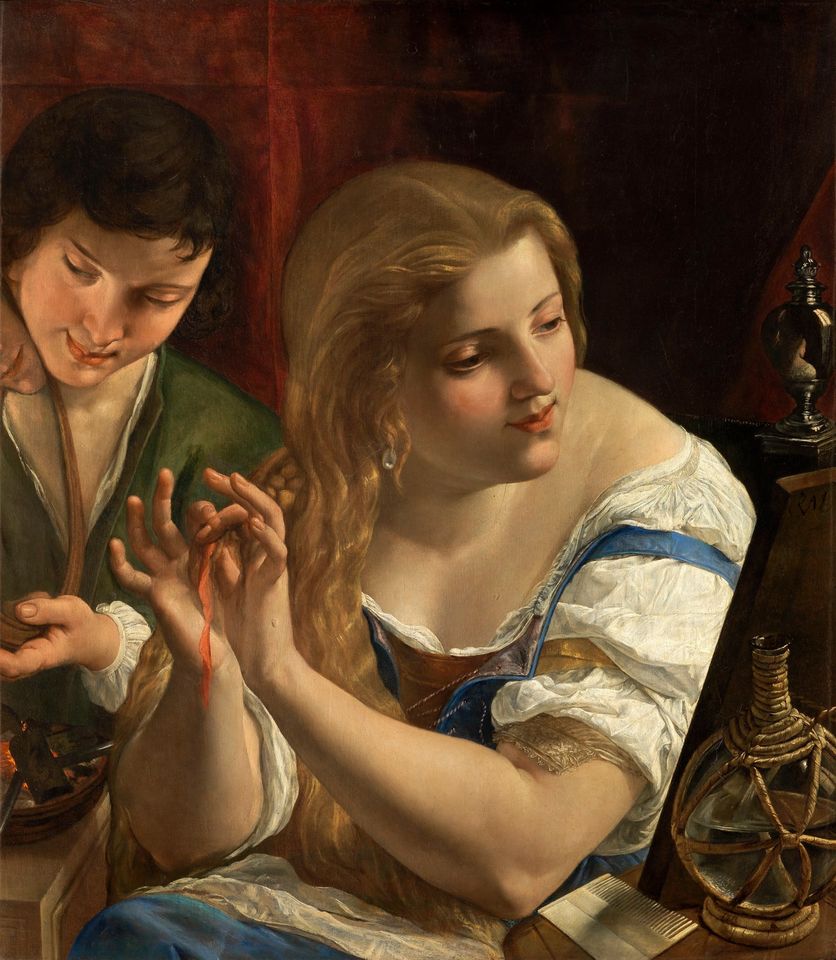 Nella terza sala troviamo l’Allegoria della vanità di Angelo Caroselli, che ritrae una ragazza intenta a farsi bella aiutata da un giovane. I dettagli dei gioielli e delle stoffe sono minuziosi, così come gli incarnati con i passaggi di luce e ombra.