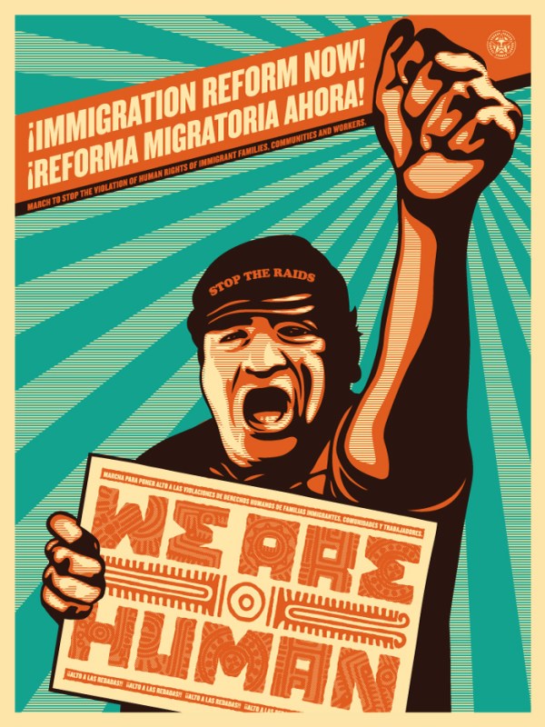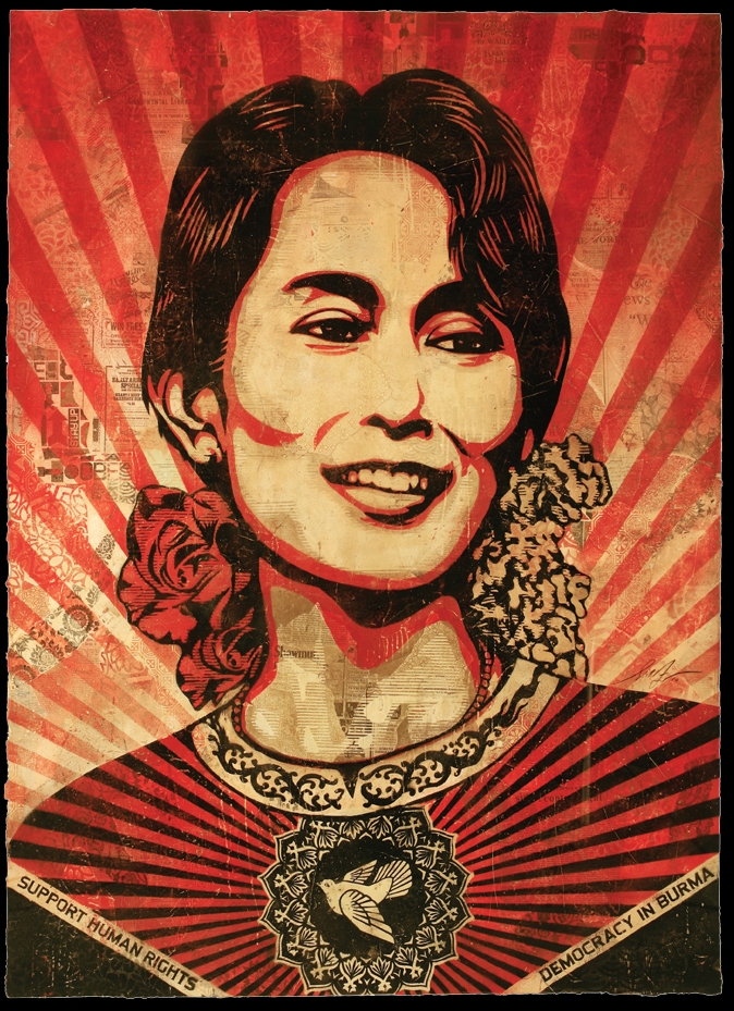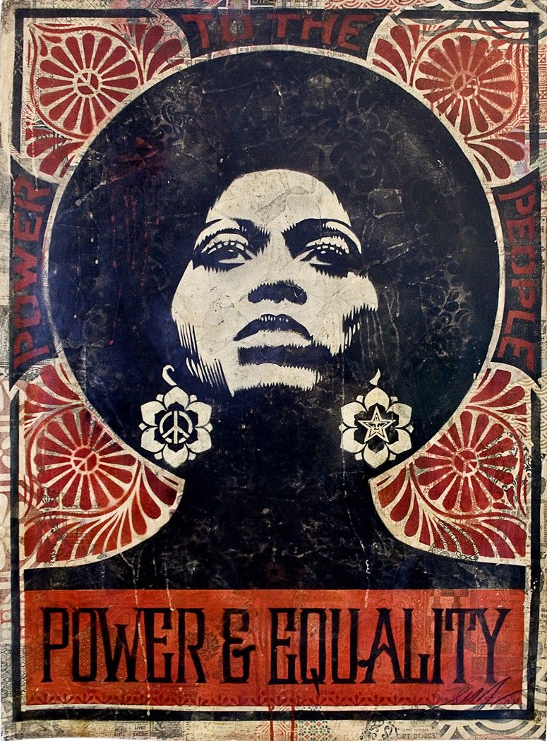 Molte opere sono state realizzate da Obey per i diritti umani: dai famosi ritratti degli attivisti afroamericani (come l’iconica stampa di Angela Davis), i poster per la riforma sull’immigrazione e i ritratti della Birmania, per denunciare la situazione politica controllata dai militari.