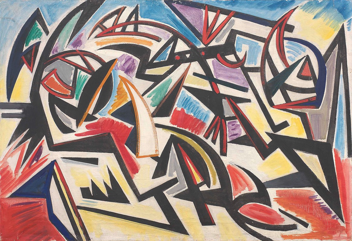 A Venezia molti artisti si radunarono intorno al ristorante All’Angelo, facendolo diventale un luogo abituale di riunioni proficue: qui nel 1946 nasce il Fronte nuovo delle arti, con il manifesto firmato il 10 ottobre, che si concretizzò artisticamente nella sala della 24. Biennale di Venezia del 1948. Ciò segnava l’inaugurazione di una nuova stagione per l’arte italiana, la pittura della resistenza, la fine delle pratiche novecentiste. Vedova, fin dagli anni ’40, aveva iniziato ad esporre in mostre personali e collettive ottenendo presto fama internazionale che si concretizzò nel 1947 All’Angelo, quando incontrò Peggy Guggenheim, interessata ad investire nei giovani artisti italiani; Emilio Vedova e la Guggenheim erano due forze che si sostenevano e si comprendevano durante il periodo delle avanguardie, lei fu sempre una sua costante sostenitrice.