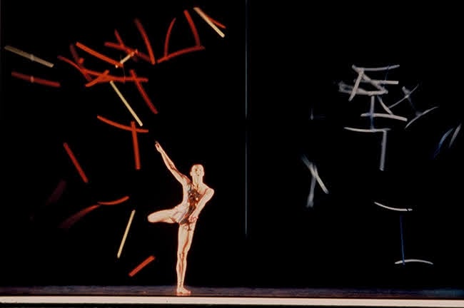 Per comprendere fino in fondo la portata innovativa di Merce Cunningham analizziamo innanzitutto la sua celebre opera realizzata al Black Mountain College che, come abbiamo detto precedentemente, venne definita solo in seguito il primo Happening della storia, ma che inizialmente si intitolava: Theater Piece No.1. L’opera fu realizzata da personalità di spicco del panorama artistico americano, la particolarità dell’opera era la partecipazione di artisti provenienti da ambiti diversi; infatti collaborarono insieme il musicista John Cage, lo scenografo e ballerino Merce Cunningham, il pittore Robert Rauschenberg e i due poeti Charles Olson e Mary Caroline Richards. Theater Piece No. 1. più che un’opera rappresentava un evento in cui musica, danza, pittura e poesia coesistevano nello stesso spazio e tempo ma separatamente: ogni artista aveva a disposizione il suo intervallo di tempo per esprimere la propria creatività, senza attenersi a testi, coreografie o spartiti predeterminati. In Theater Piece No. 1 Merce Cunningham sperimentò per la prima volta la sua teoria rivoluzionaria sulla danza, quella che poi diventò il suo elemento cardine di qualsiasi realizzazione coreografica, ovvero la separazione netta e definitiva tra danza e musica. Se prima i movimenti dei ballerini venivano scanditi dal ritmo e dal filone narrativo della musica, ora queste due arti (danza e musica) continuavano a coesistere sullo stesso spazio palcoscenico, ma separate e quindi diventavano per la prima volta nella storia indipendenti l’una dall’altra. Da quel momento in poi Merce Cunningham lavorò sulla rivoluzione dei parametri primari della danza, definendo il ritmo a partire, non più dall’andamento della musica, ma dal movimento inteso come attitudine naturale del corpo stesso e, ancora più radicalmente, dal movimento peculiare di ogni singolo danzatore. Il ritmo allora nelle sue opere si trasformava in qualcosa non più prestabilito, ma in qualcosa in continuo cambiamento, che veniva rivoluzionato quotidianamente sia dall’evoluzione del corpo del ballerino, sia dall’attitudine mentale dello stesso. Questa mancanza di un ritmo scandito, ma soprattuto continuo, portò alle sue performances (che prenderanno successivamente il nome di Events), la totale eliminazione di un racconto o stato d’animo ma all’introduzione della rappresentazione totale della pura attività artistica, che si dispiega nello spazio e nel tempo cambiando costantemente. Nelle opere di Merce Cunningham ciò che prevale è il presente qui ed ora, dove per questo la casualità divine il ritmo stesso della creatività.