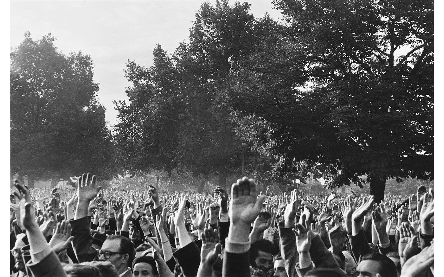 L’intento di Marquis è proprio immortalare gli attimi in modo spontaneo, unico, senza apporre alcun filtro estetico, lasciando trapelare solo la verità del momento e dell’immagine; in Manifestation le mani delle persone sono le protagoniste assolute dello scatto, e si perdono fino a sconfinare i bordi dell’immagine stessa, i limiti dello spazio fisico, quasi coinvolgendo lo spettatore e invitandolo ad ‘entrare’. Nelle altre due fotografie palpabile è invece la voglia di cogliere e trasmettere il cambiamento industriale in atto negli anni ’50: due operatori portuali di Liverpool colti a riposo, contornati dalle vergini innovazioni inglesi in campo navale e degli operai a lavoro in un nuovo solaio dalla straordinaria modernità. In entrambi gli scatti la luce fa da padrona ed avvolge l’atmosfera. Il ruolo della luce e la verità dell’immagine sono due pilastri fondamentali della fotografia di Jean Marquis.