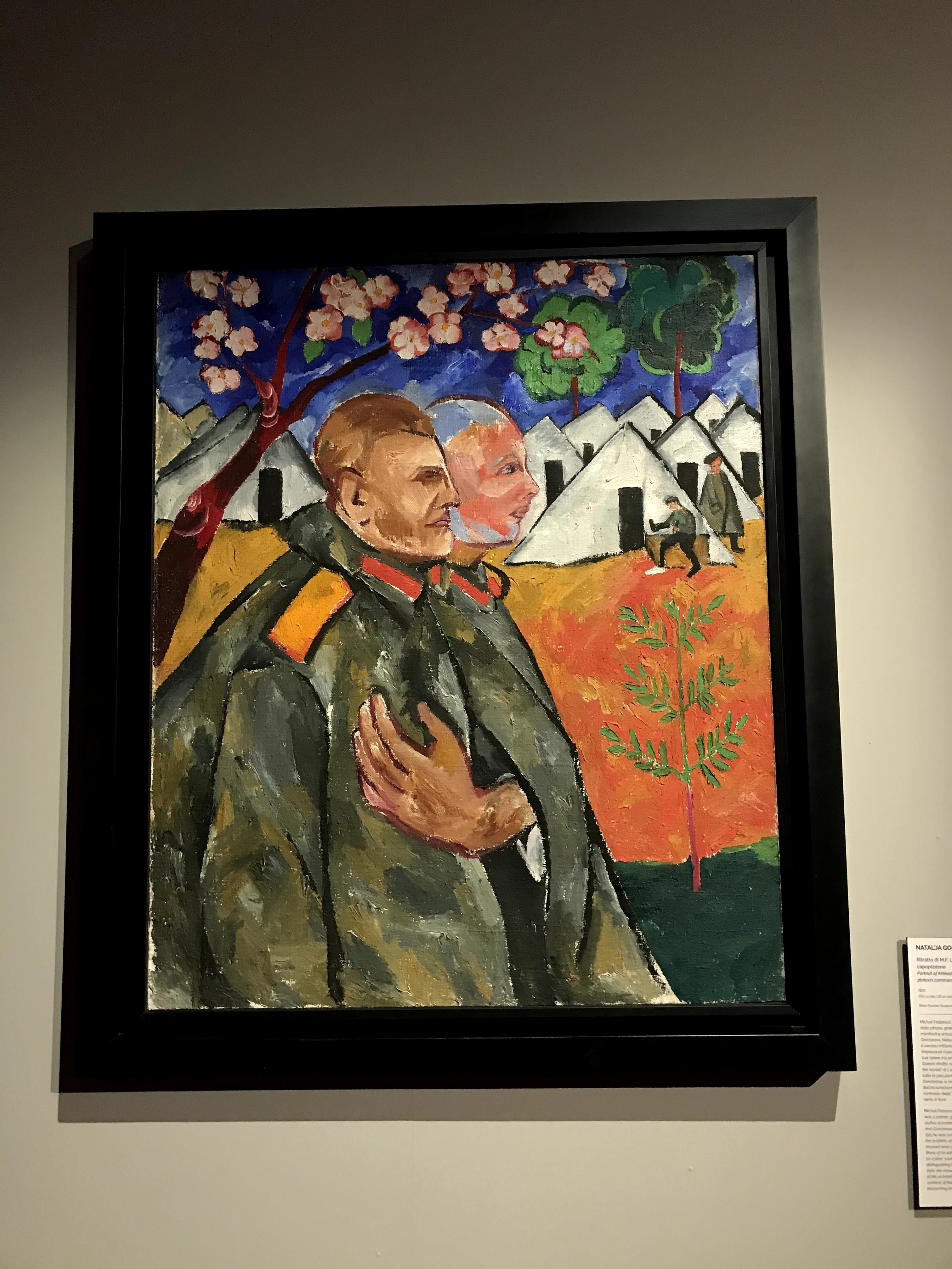 L’ultima sezione della mostra, come anticipato prima, è l’unica vera area dedicata alle pittrici russe. La sezione è intitolata: “le artiste realismo e amazzoni dell’avanguardia“. A mio avviso questa sezione è stata poco curata (la spiegazione qua è estremamente approssimativa) e soprattutto le opere selezionate non rendono adeguatamente omaggio a queste grandi pittrici. In particolare sono rimasta estremamente delusa dalla sezione dedicata a Natalia Goncharova, troppo superficiale e non emblematica, errore grave considerando l’incredibile successo che ha avuto la mostra interamente dedicata a lei a Palazzo Strozzi nel 2019. In conclusione mi sento di consigliare comunque la visita alla mostra, ma tenendo in considerazione che non si tratta di una mostra dedicata alle ariste russe, in quanto non si riesce ad apprendere nulla di nuovo rispetto a quanto sia già stato detto (sempre in maniera marginale, se non per alcuni casi). La mostra rappresenta, nonostante questo grande difetto, un’ottima occasione per conoscere la tradizione e la cultura russa, in particolare osservando artisti minori che non sono mai stati esposti fuori il territorio nazionale.