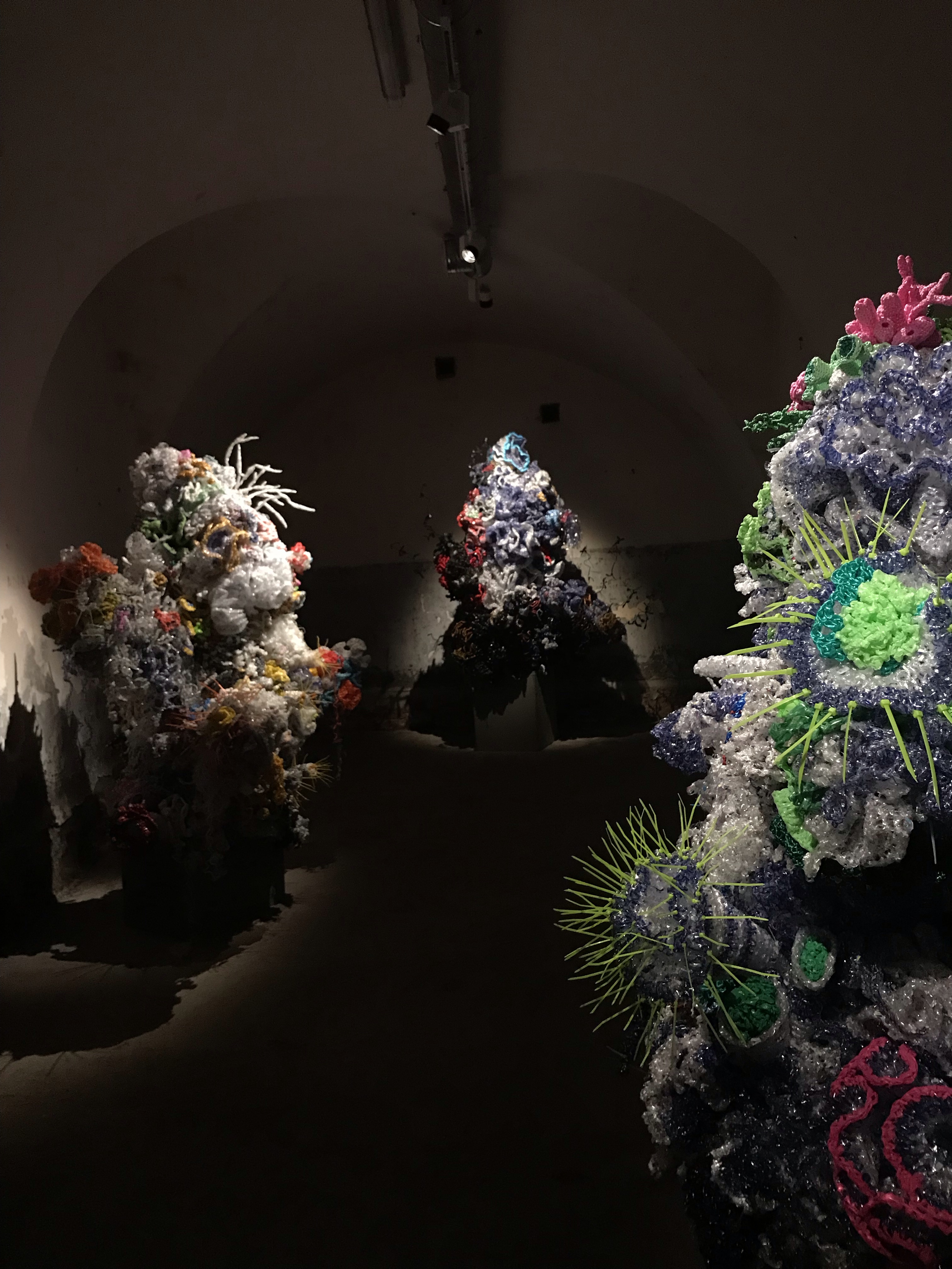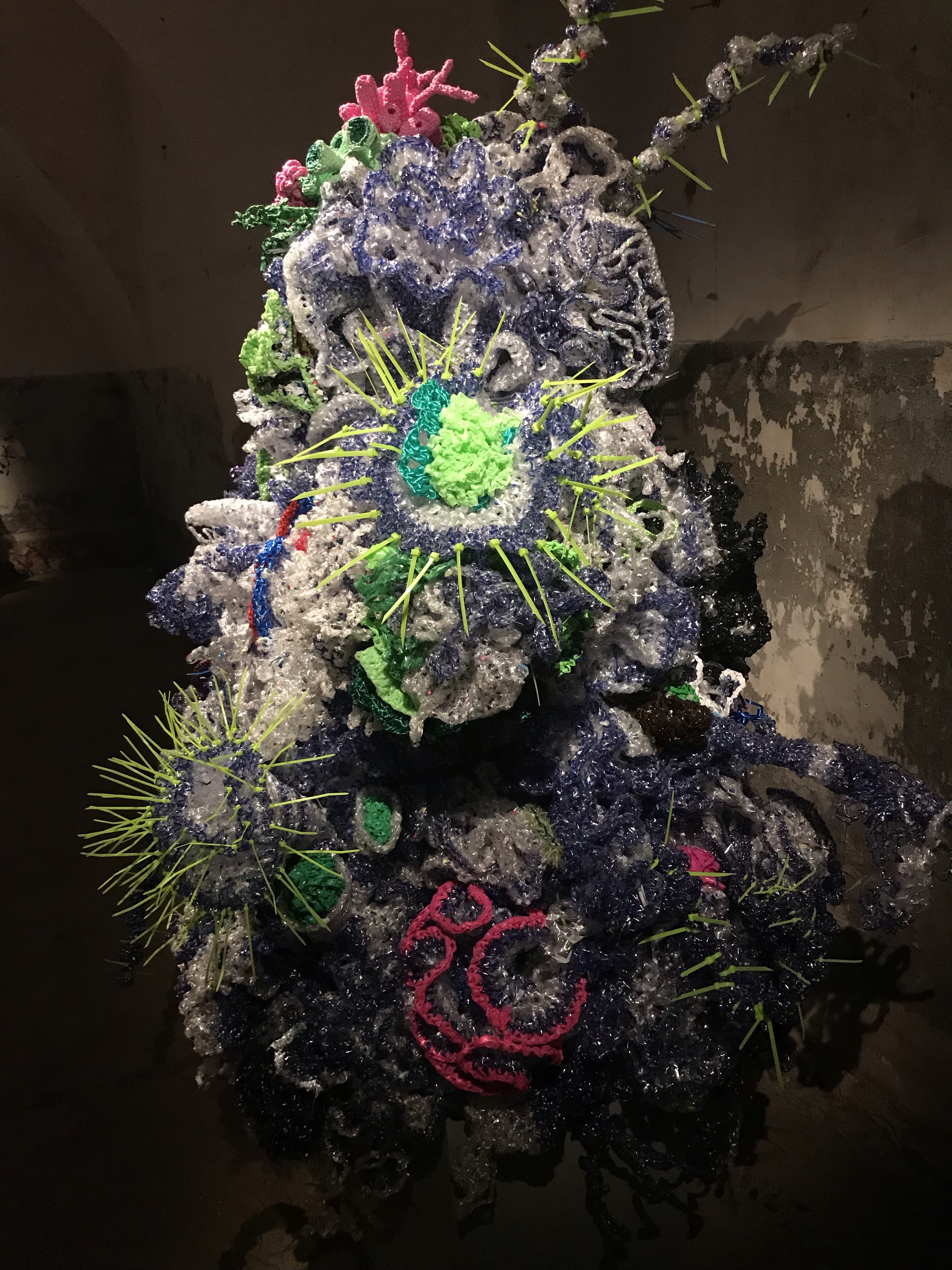 Tema molto presente in questa biennale è quello ecologico, rappresentato da strutture cortometraggi e performance che ci ricordano e ci fanno riflettere come il nostro ecosistema sia in precario equilibrio. Rappresentativi su questo tema sono il corto Pumzi di Wanuri Kahiu, ambientato in un futuro distopico senza acqua e completamente desertico, le installazioni di Margaret & Chrisitne Wertheim che in plastica e all’uncinetto riproducono delle piccole barriere coralline, una bellezza naturale sempre più in pericolo a causa del surriscaldamento delle acque; più enigmatico è l’installazione del finlandese Jaakkq Niemela che con Quay 6 vuole pone la struttura come una metafora di come l’ecosistema si regga su qualcosa di precario che senza un pezzo tutta la struttura non esisterebbe più, ricordandoci con il tetto rosso il livello che l’acqua raggiungerà mano a mano che si innalza il livello dell’acqua.