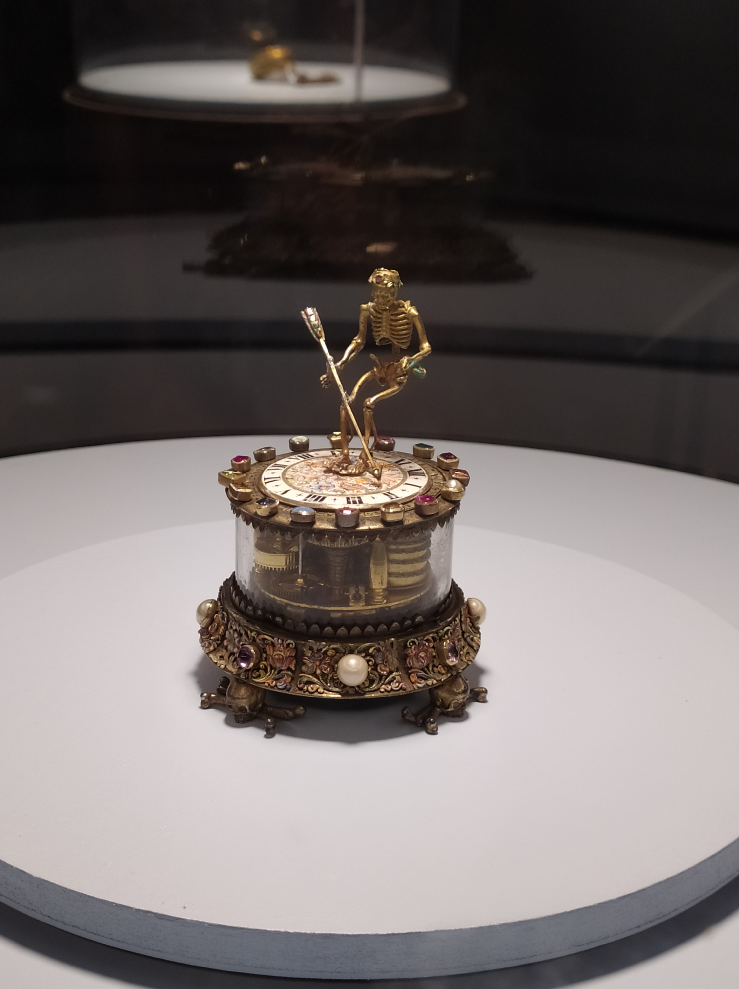 Si inizia con la prima sala dedicata al mito del tempo, ovvero Chronos figlio di Gea (la dea della terra) e di Urano (signore del Cielo). Solitamente è rappresentato come un vecchio alato con una falce in mano e sperro è accompagnato dall’allegoria della Verità, una donna nuda che viene svelata dal dio.