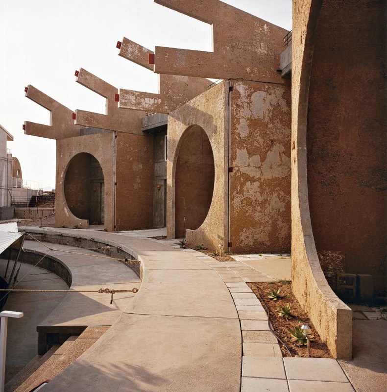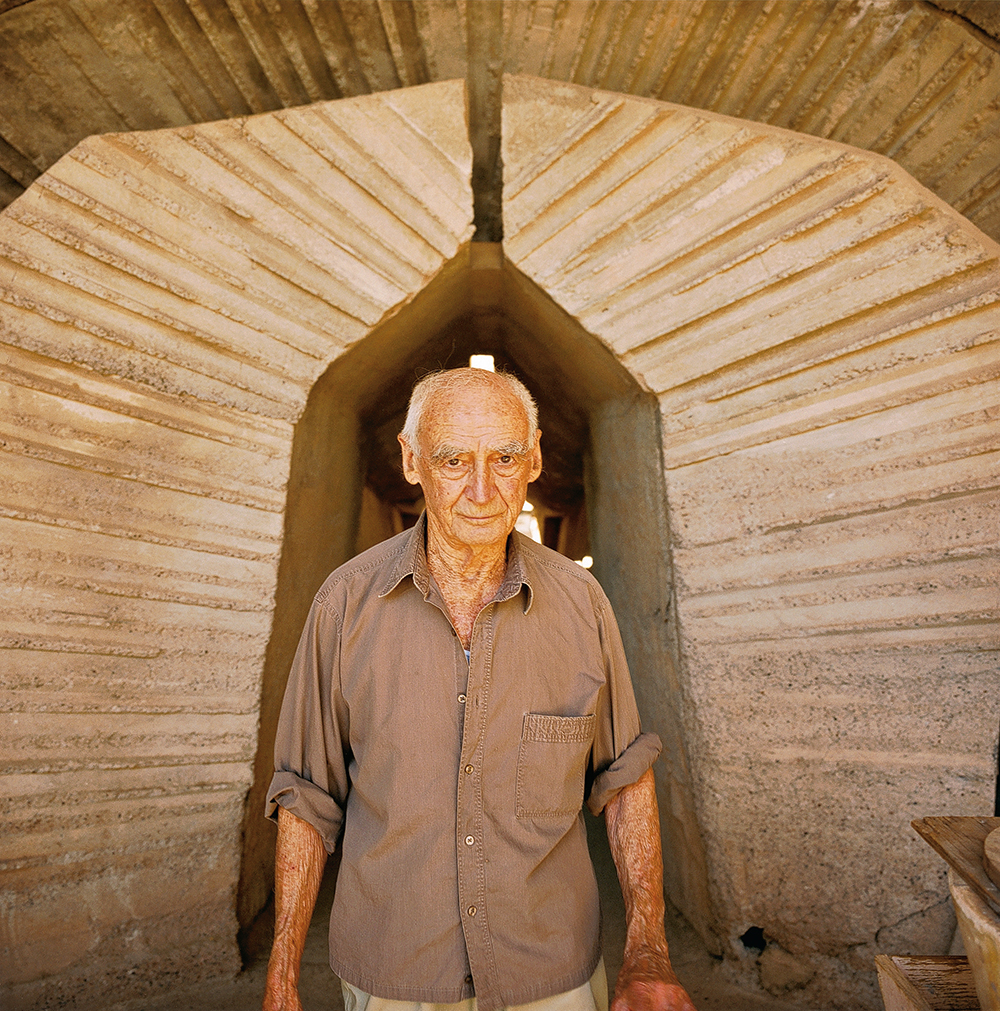 Paolo Soleri era un architetto visionario torinese, nato nel 1919. Interessato al connubio di architettura e natura, scopre le opere di Frank Lloyd Wright e ne segue gli insegnamenti trasferendosi a Taliesin West, nel deserto dell’Arizzona, per frequentare la Fellowship di Wright. Dopo il suo percorso e lo studio a fianco dell’architetto statunitense, Solari si distingue per la progettazione di varie strutture, dal ponte The Beast (1) alla Dome House (2) fino alla fabbrica di ceramiche di Vietri sul Mare (3), attirando l’attenzione del MoMA e di nuovi committenti che vedevano nelle architetture di Solari una nuova frontiera dell’architettura organica.