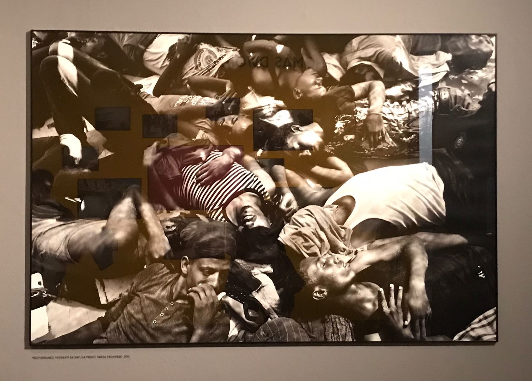 Si continua la visita con la sala dedicata agli anni Ottanta, che hanno visto l’entrata in scena si Silvio Berlusconi, fotografato da Ferdinando Scianna. Per la prima volta, durante il percorso espositivo, vediamo utilizzare il colore, sia da Scianna che da Martin Parr, che utilizza il colore per enfatizzare i suoi ritratti dei turisti in Italia, riportando il “kitch” del turismo inglese.