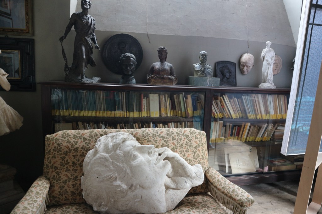 Nella Fortezzuola Canonica allestì il suo studio e ancora oggi è visibile al primo piano il suo appartamento privato. Nella sua collezione personale figurano diversi quadri dell’Ottocento piemontese, oltre ad arazzi, arredi pregiati e… l’armatura di un samurai! Simbolo della sua personalità curiosa ed eclettica. Egli, difatti, non era solo uno scultore, ma anche un musicista. Studiò composizione fin dal 1912 e scrisse cinque opere liriche, occupandosi di definire tutti i dettagli dalla musica al libretto, fino ai bozzetti per i costumi.