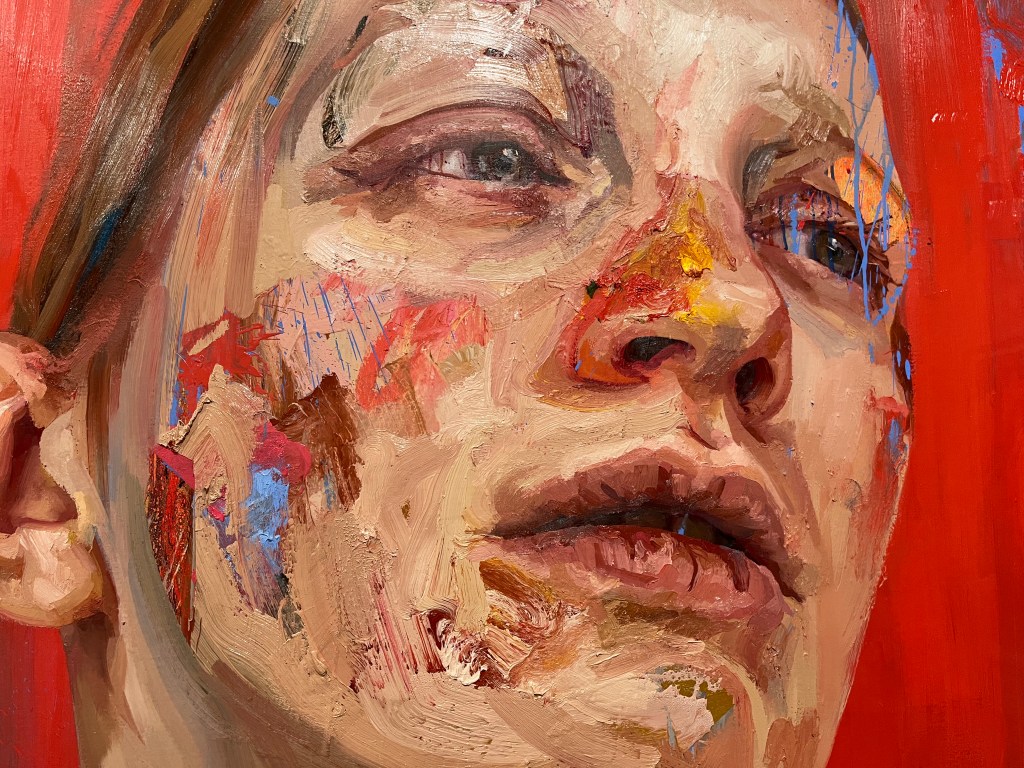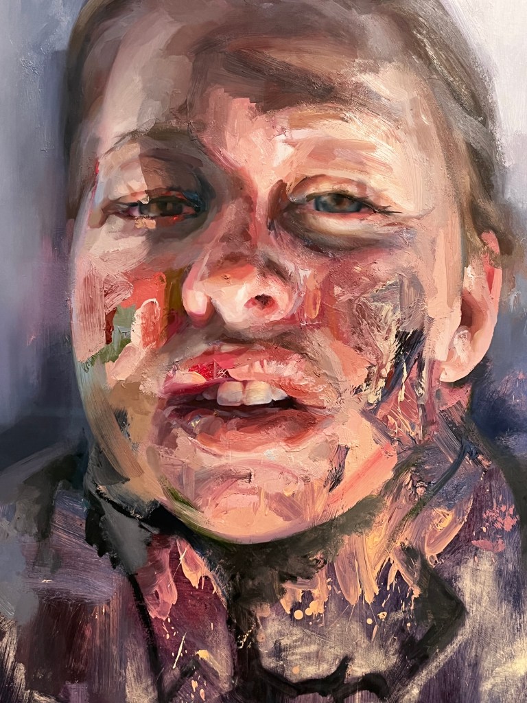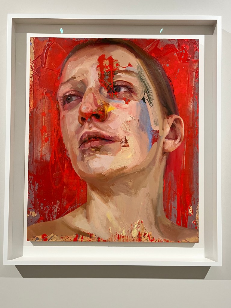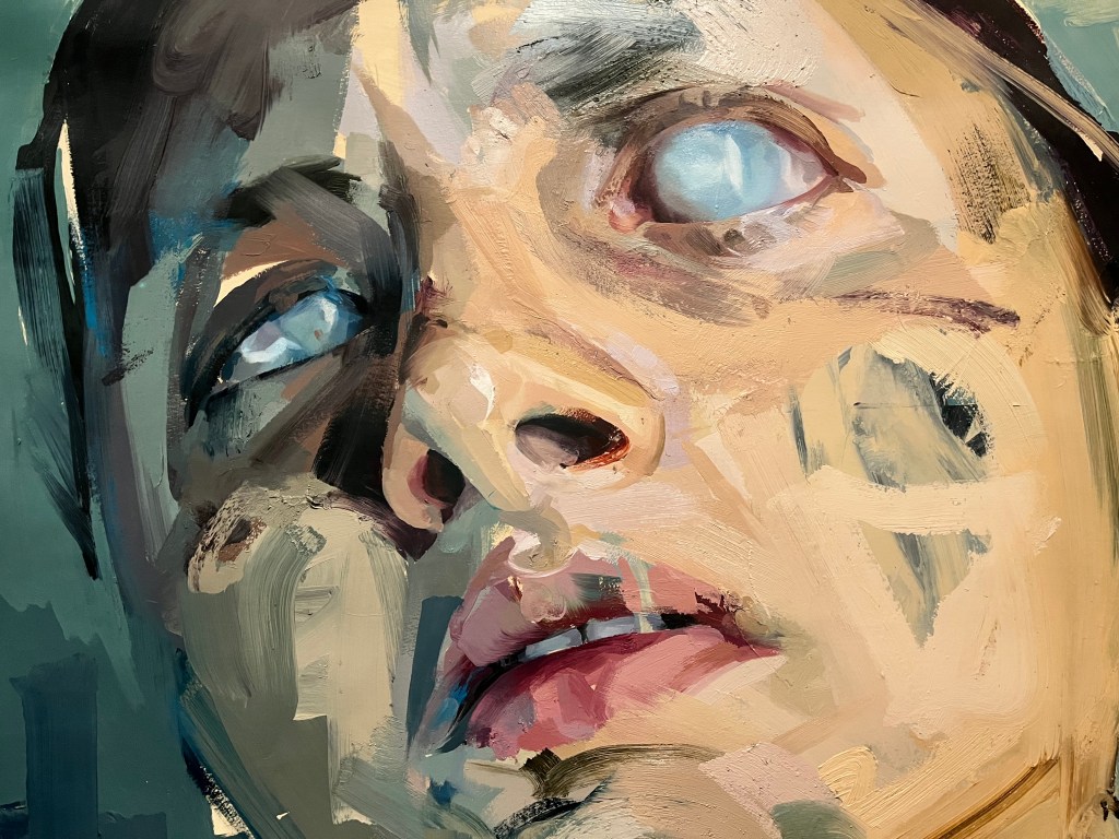 La visita alla mostra non è leggera come quella di Koons, l’arte di Saville è perturbante, l’artista ci accompagna in un percorso di estrema introspezione, noi proviamo le emozioni di dolore e gioia dei protagonisti dei ritratti, noi siamo loro solo che abbiamo altre sembianze, ma quei sentimenti li assaporiamo ogni giorno. Allo stesso tempo però conclusa la visita abbiamo anche una sensazione liberatoria, una catarsi, in quanto finalmente comprendiamo che siamo “soltanto un filo d’erba in un prato, non il centro del mondo” e che le nostre sofferenze possono e devono essere condivise. L’opera più significativa è Rosetta II (olio su tela, 2000-2006), la quale raffigura una giovane donna non vedente conosciuta dall’artista. Rosetta sembra guardare nel nulla e perfino il nulla, mostrandosi al mondo sprofondata nella propria intimità e intensa concentrazione. Le sue pupille appaiono bruciate. I suoi occhi, velati, sono come murati da una pasta pittorica corposa, che la priva della vista. Il suo sguardo, rivolto verso l’alto, ricorda quello di certe sante immaginate dai pittori rinascimentali, intente a guardare lontano, fuori di sé, in un contatto tutto interiore con la visione celestiale. La pittura, veemente e drammatica, traduce la condizione fisica e psicologica della donna ritratta. Dalle intense pennellate trasuda il senso di compassione e intensa comunione spirituale dell’artista con il proprio soggetto.