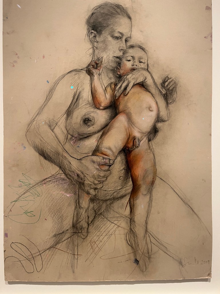 La mostra che in assoluto mi ha maggiormente colpito nell’ultimo periodo è quella di Jenny Saville a Museo del Novecento. Jenny Saville è una delle più grandi ariste viventi del decennio, nata a Cambridge nel 1970, tra i grandi (con Damien Hirst e Tracey Emin) primeggia nel gruppo Young British Artists, inoltre è l’artista donna vivente più pagata al mondo (il suo “Propped”, maestoso olio su tela del 1992, era stato battuto il 5 ottobre 2018 da Sotheby’s Londra per 12,4 milioni di dollari). La mostra costituisce un’occasione unica per conoscere un’artista che purtroppo non è sufficientemente conosciuta in Italia, nonostante il nostro paese sia stato ed è tutt’ora fondamentale per le sue creazioni. Jenny Saville attualmente ha due studi d’arte, uno a Londra e uno a Palermo, sempre in Italia si è appassionata all’arte e alle grandi tele, in particolare quando da piccola (insieme allo zio) ha visitato Venezia rimanendo folgorata dai quadri di Tiziano e Tintoretto, in primis dall’opera “Assunta” di Tiziano.