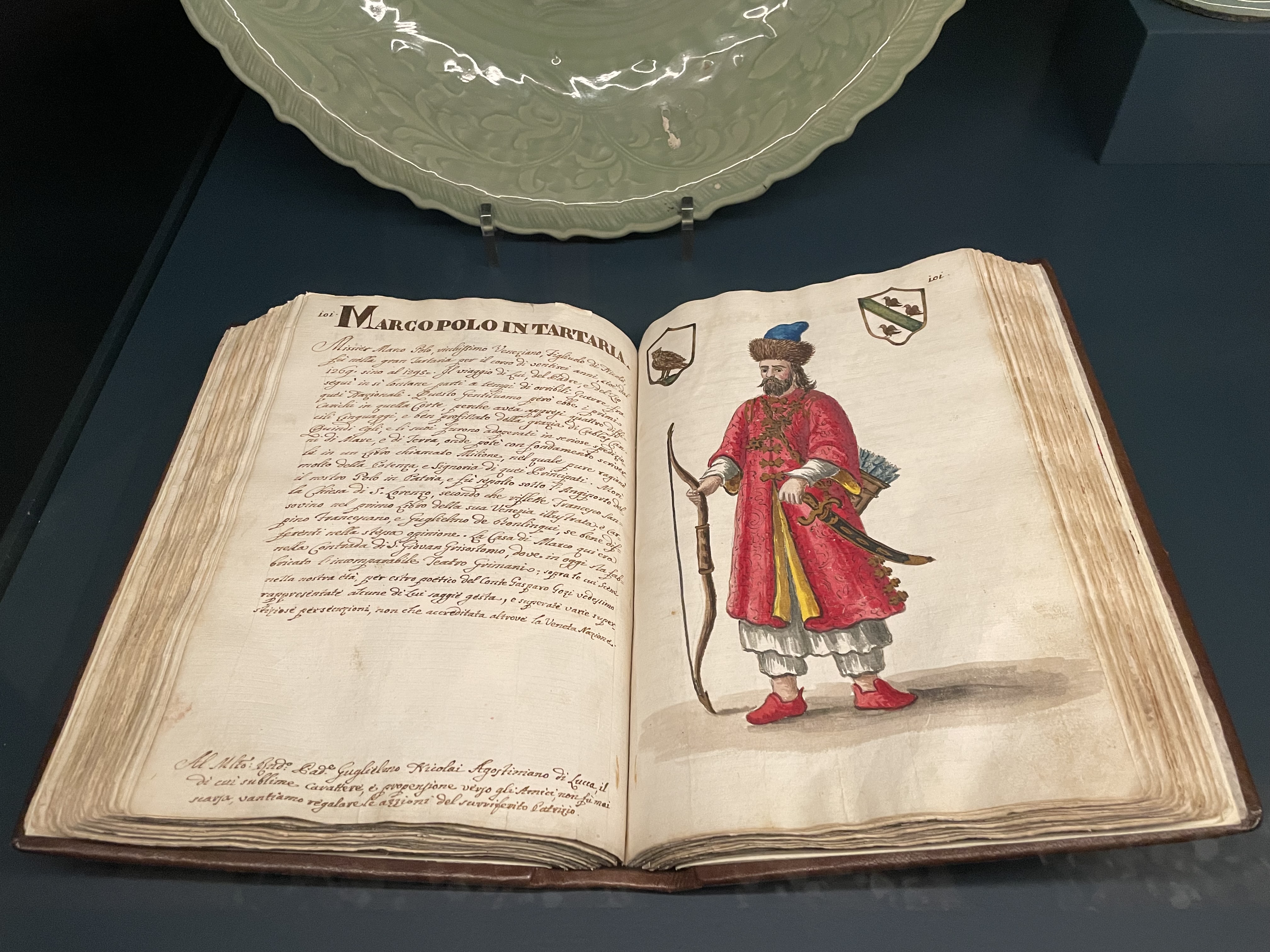 4. Veduta generale della sala n.4; 5.Giovanni Grevembroch, Marco Polo in Tartaria, da Gli Abiti de Veneziani, Volume I, 1754ca., Disegno ad acquerello, Venezia, Biblioteca del Museo Correr.